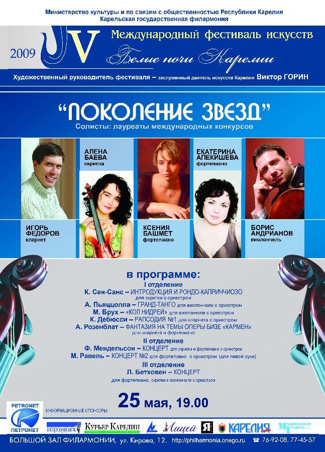 Яркие музыкальные программы, прославленные имена выдающихся мастеров мировой культуры, высочайший уровень профессионализма и духовности делают фестиваль не только самым важным, значительным событием в культурной жизни Республики Карелия, но и одним из наиболее интересных фестивалей России.
